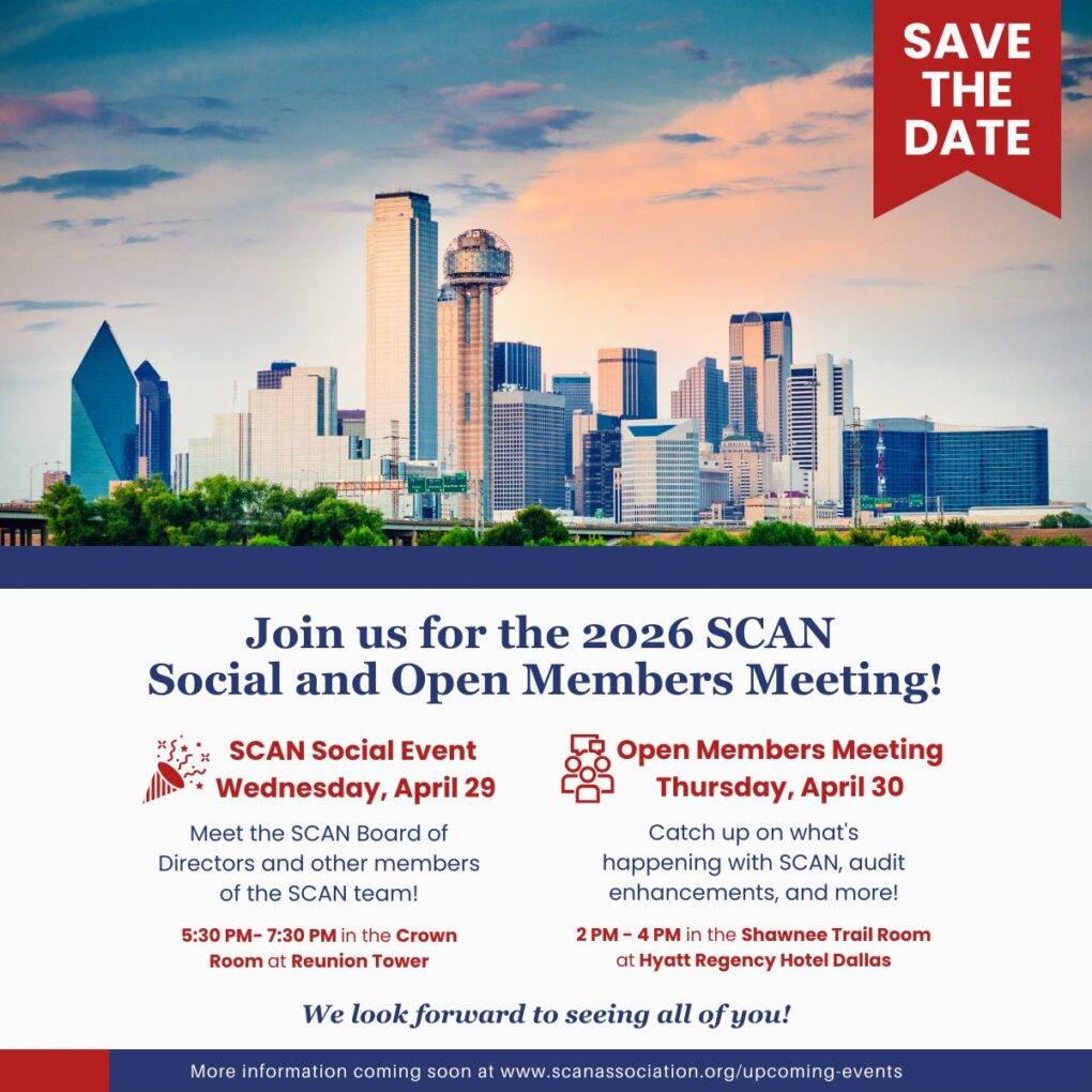Join us in Dallas on April 29–30, 2026 for the SCAN Social and Open Members Meeting. These gatherings bring together SCAN members, leadership, and industry peers for networking, insights, and important organizational updates.